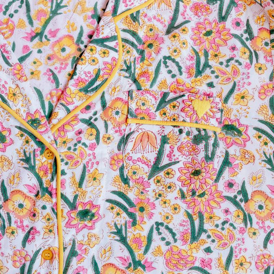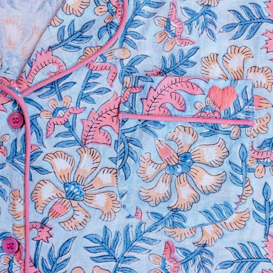 Looking for pyjamas that blend style, comfort, and sustainability? PyarPjs has you covered with our collection of women’s pyjamas. Our hand-printed sustainable clothing offers luxurious softness with special details like our hand-embroidered heart.